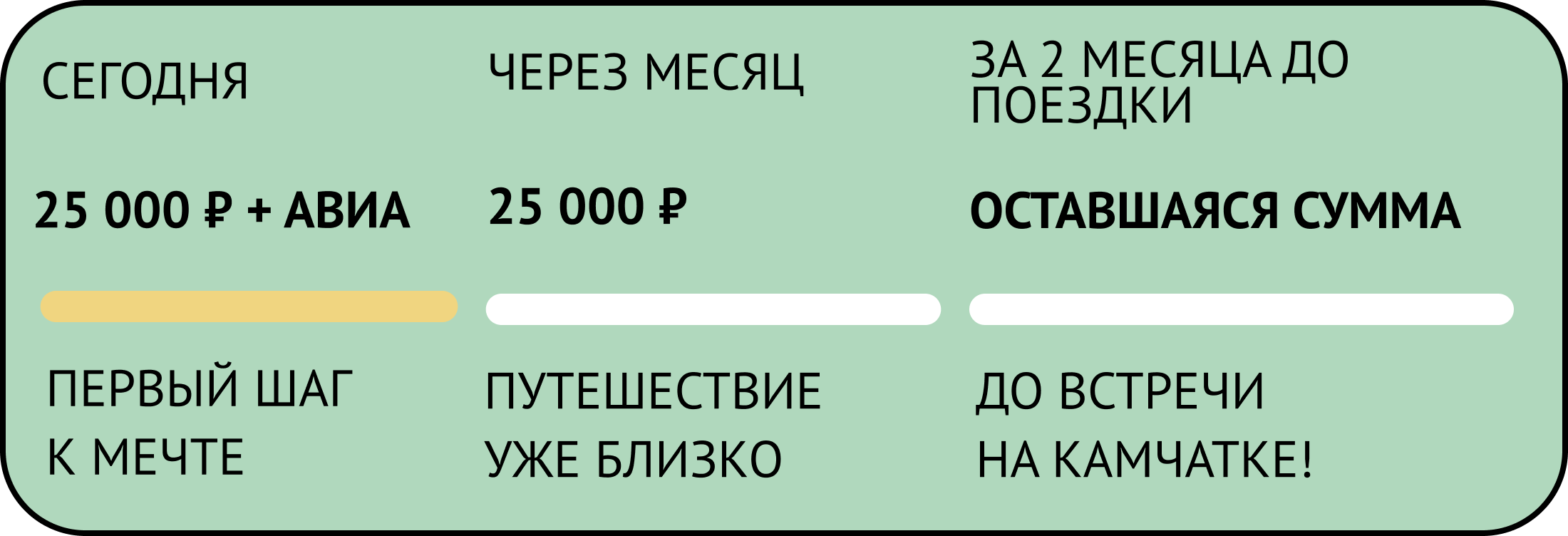 Для брони достаточно 5000 рублей и факта покупки авиабилетов (купить билеты заранее - выгодно). Оставшуюся часть суммы нужно будет внести через две недели. В индивидуальном порядке мы можем обсудить комфортный график платежей.